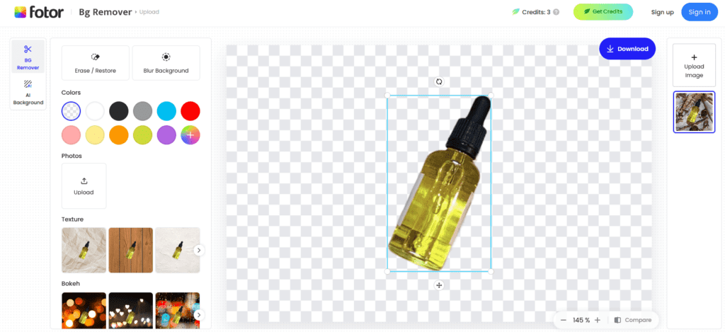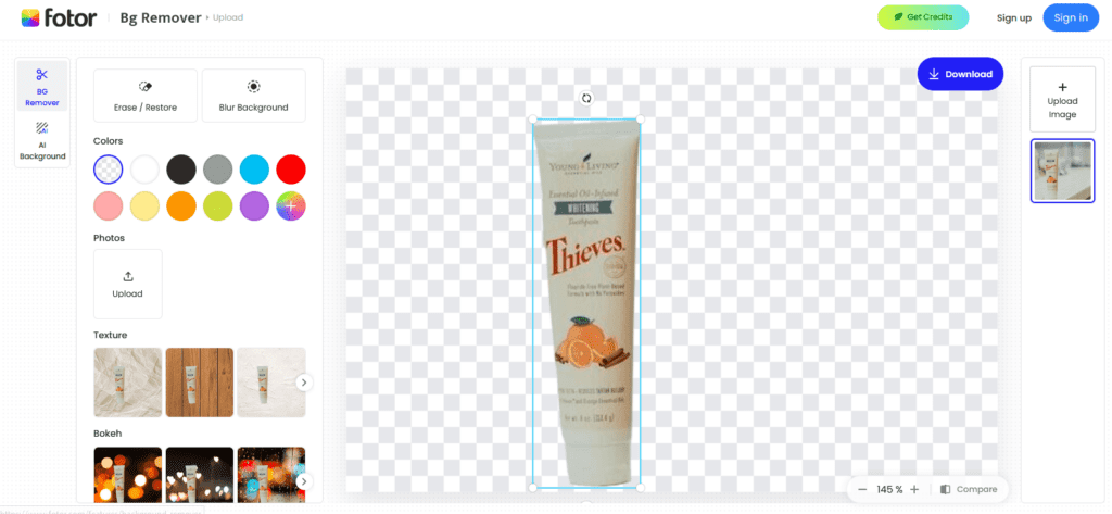 - AI background generation costs credits and credits are not cheap to buy on Fotor.