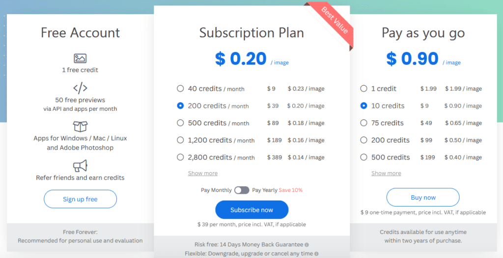 Price: Free, Credit-based subscription plans, pay-as-you-go plans