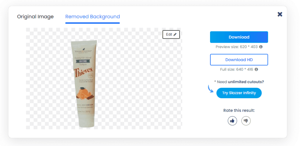 The results on Slazzer were as accurate as those on Fotor. Everything from defining the product edges to eliminating the unwanted objects in the background was sharp.