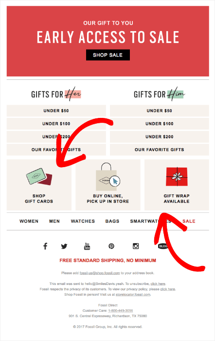 Creating a specific email for this segment will help you pocket those sales easily. More often than not, people look for these gifts in their inbox to source ideas from a familiar brand.