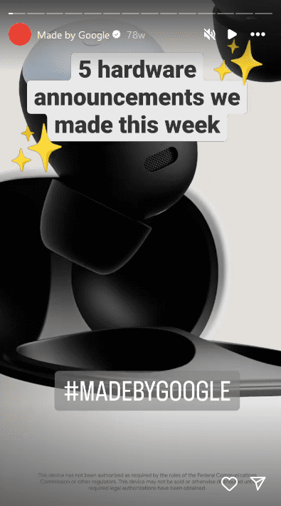 For example, on the Stories of Google’s Instagram page, you’ll find instant updates about major announcements as well as weekly recaps of any big news from the tech company. That’s creative use of Story posts to keep your audience in the loop!