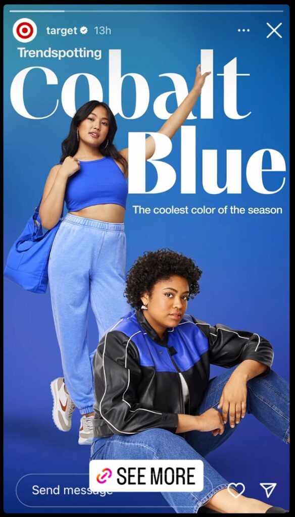 - Use bold and elegant IG fonts that instantly convince users to stop rather than scroll away. The below Story post on the Target page uses big bold attention-grabbing fonts.