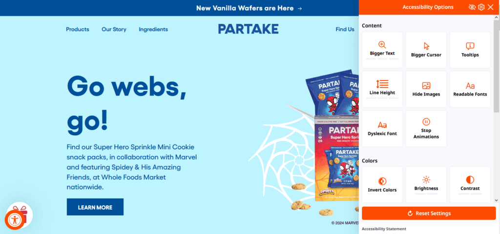 In today’s crowded online landscape, how do you make your website shine? Focus on the little details that offer big value, like accessibility features. The Partake Foods website exemplifies this with its accessible design and customizable features.