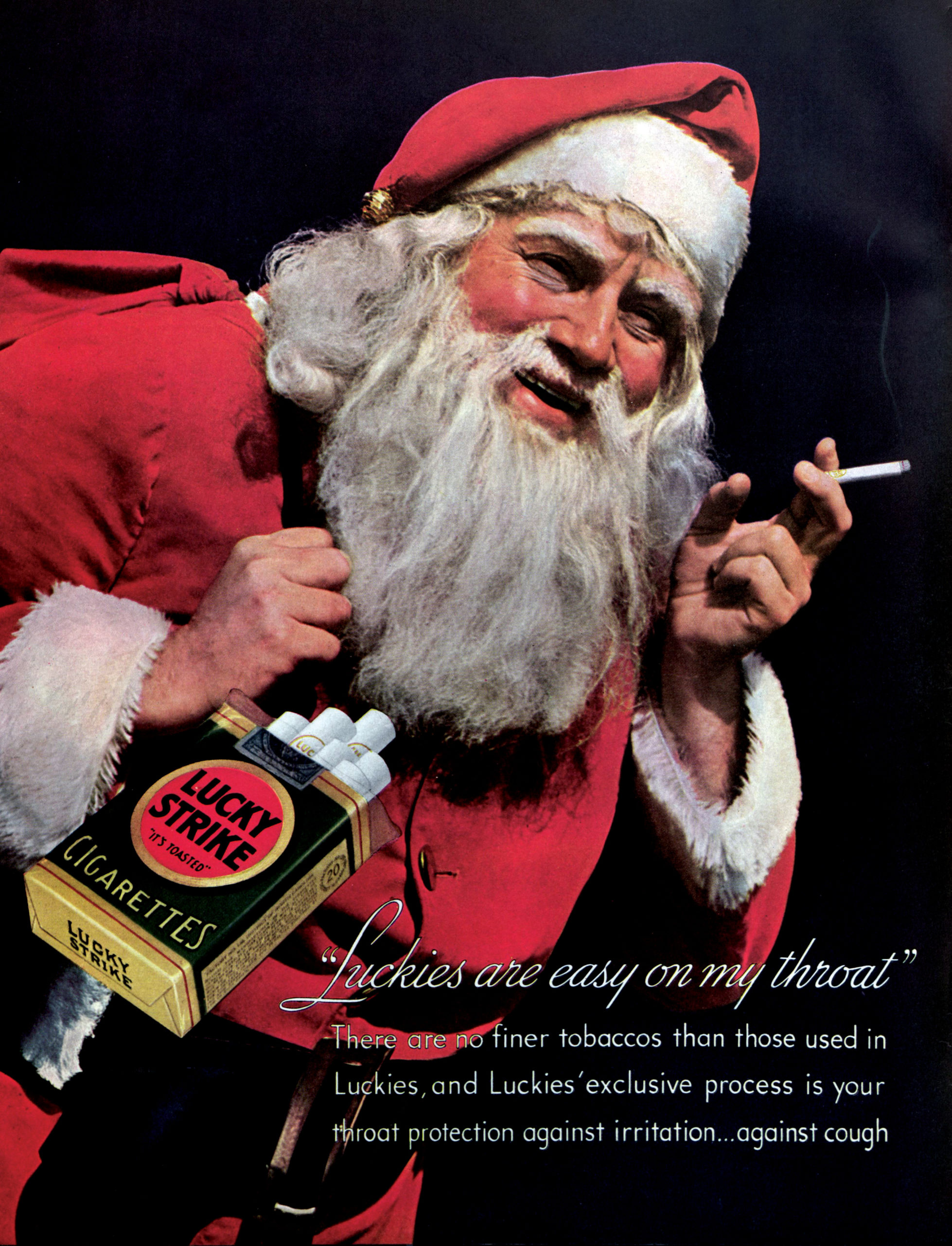 There were a few other such ads that tried to impart a dark shade to Santa and these were mostly either forgotten completely or instantly hated by most people. One other example would be the 1936 ad by Lucky Strike Cigarette featuring Santa smoking.