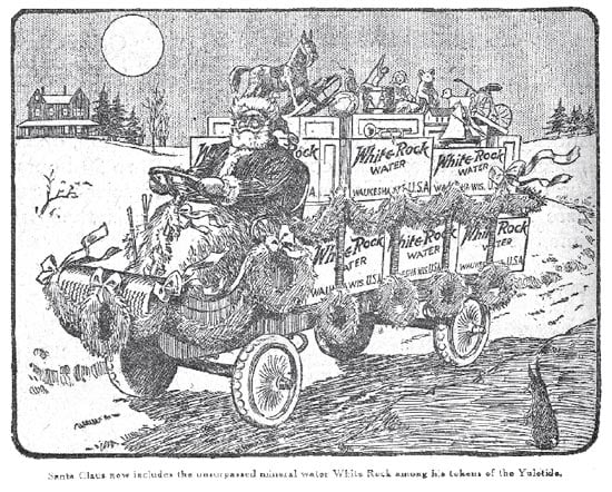 While Coca-Cola gave Santa a “marketing” makeover, they weren’t actually the first beverage company to do so. White Rock had Santa delivering Christmas cheer even earlier.