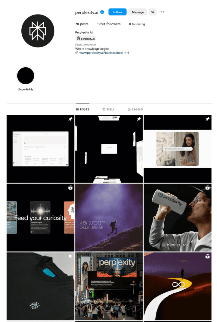 For instance, Perplexity AI has been one of the fastest-growing AI startups in recent times and they have consistently built a strong social media presence. Here is a snapshot of their Instagram page filled with product updates, announcements, and engaging video posts.