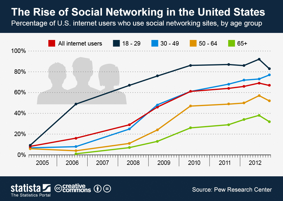 Here’s a line graph from Statista showing the rise of social networking sites in the U.S.: