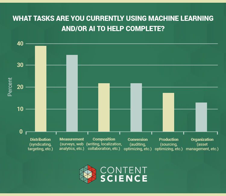The infographic below compares the percentage of people using AI/machine learning for various tasks.