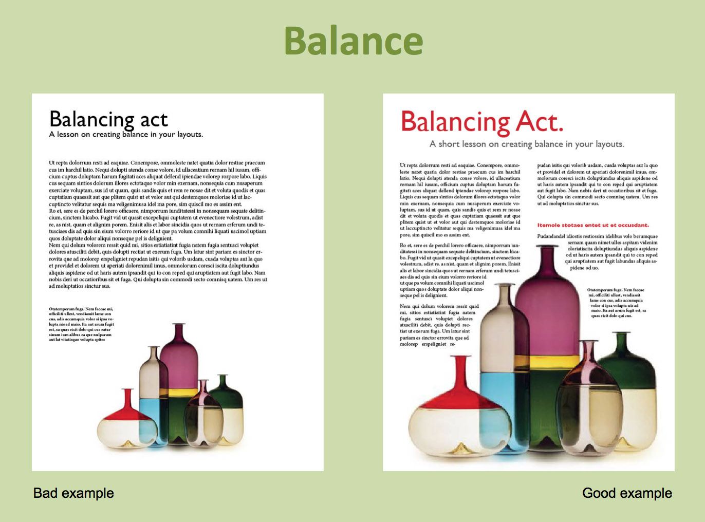 - Alignment of the different elements such as images, text, logo, and other designs within the design itself.