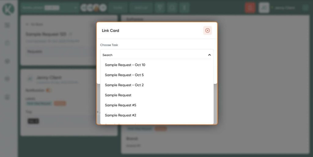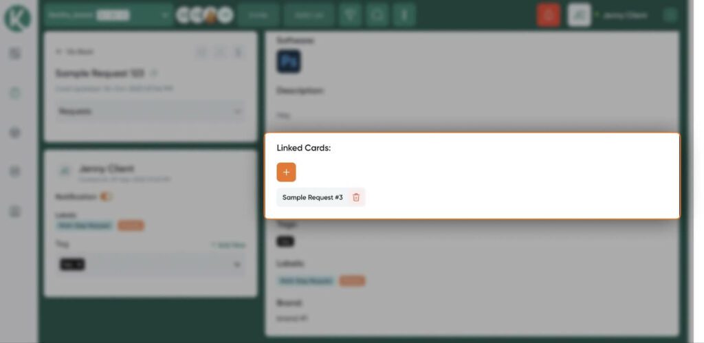 KIMP Tip: You can link cards while adding a request, but this cannot be done once a request has been submitted. If you prefer to link cards after a request has been submitted, please utilize the comments section, where you will find the option in the dropdown box, as shown in the image. Alternatively, you can use ‘#’ as a quick shortcut for linking cards.