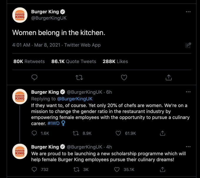A good example will be the instance when Burger King used a clickbait Tweet for International Women’s Day. The controversial statement did grab all the attention the brand thought it would. But the underlying message did not save the brand from the wrath of the social media crowd!