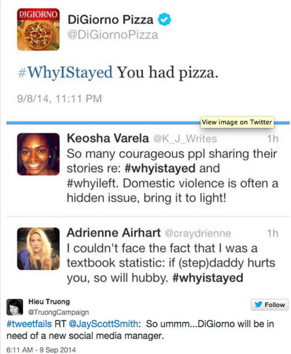 For a quick background, the #WhyIStayed hashtag on social media back then was about people sharing their domestic abuse stories. So, the above post was not the best idea after all! The brand faced a lot of criticism from the social media circle.