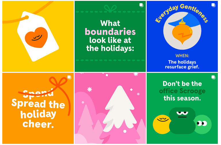 The below image is a snapshot of the Instagram page of Headspace, an app offering guided meditations and more. Anyone who knows the brand or has encountered the brand through marketing emails and the app might perhaps instantly recognize the signature visual style and brand colors. That’s the power of creating on-brand content for social media.