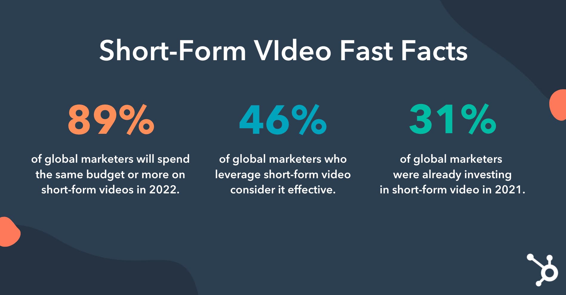 But what video content should you be focusing on as per the 2022 digital marketing trends? Hubspot’s survey tells us that short-form content is a consumer and marketer favorite with 46% of marketers considering it to be an ideal investment for performance and engagement.