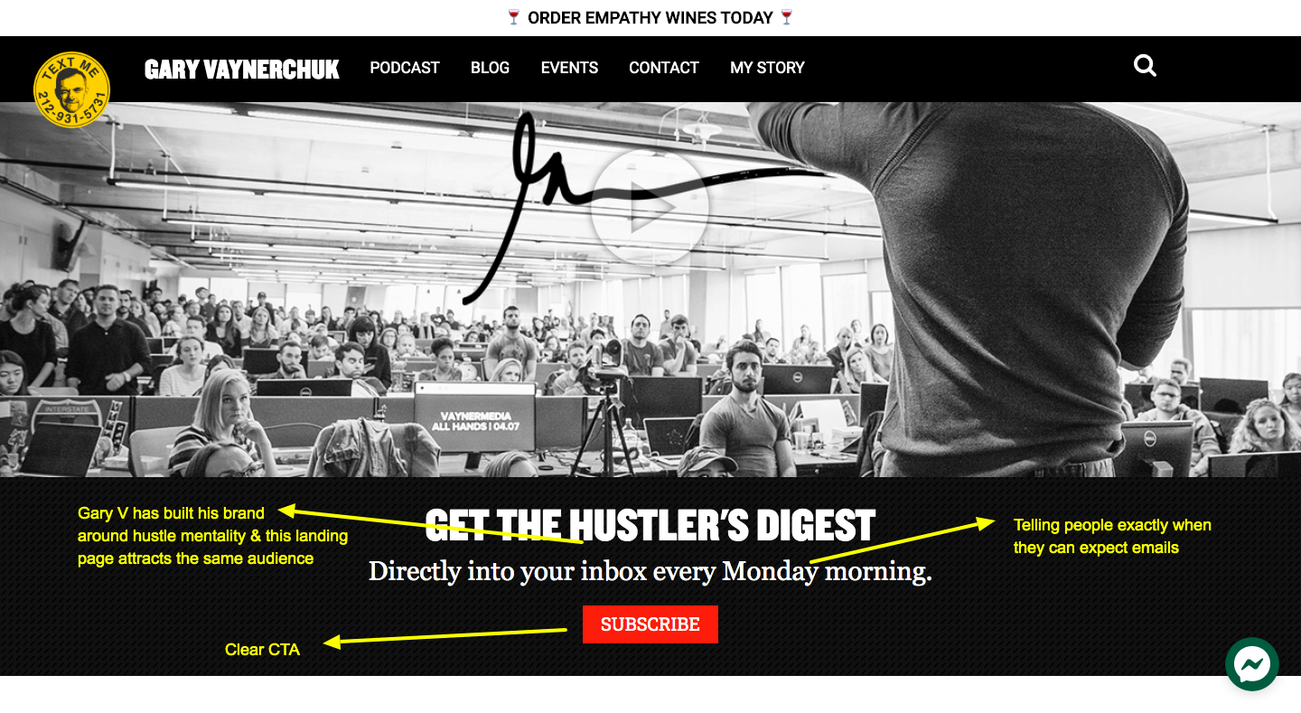 To create an email list, you’ll want to use a combination of tactics. A landing page, subscribe pop ups and website banners are some of the common and effective methods. A few other options include: