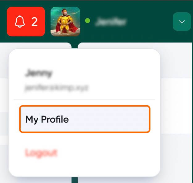 The “My Profile” section can be found in the menu on the left-hand side, under “My Account”. Or simply by using the dropdown at the top right of your screen.