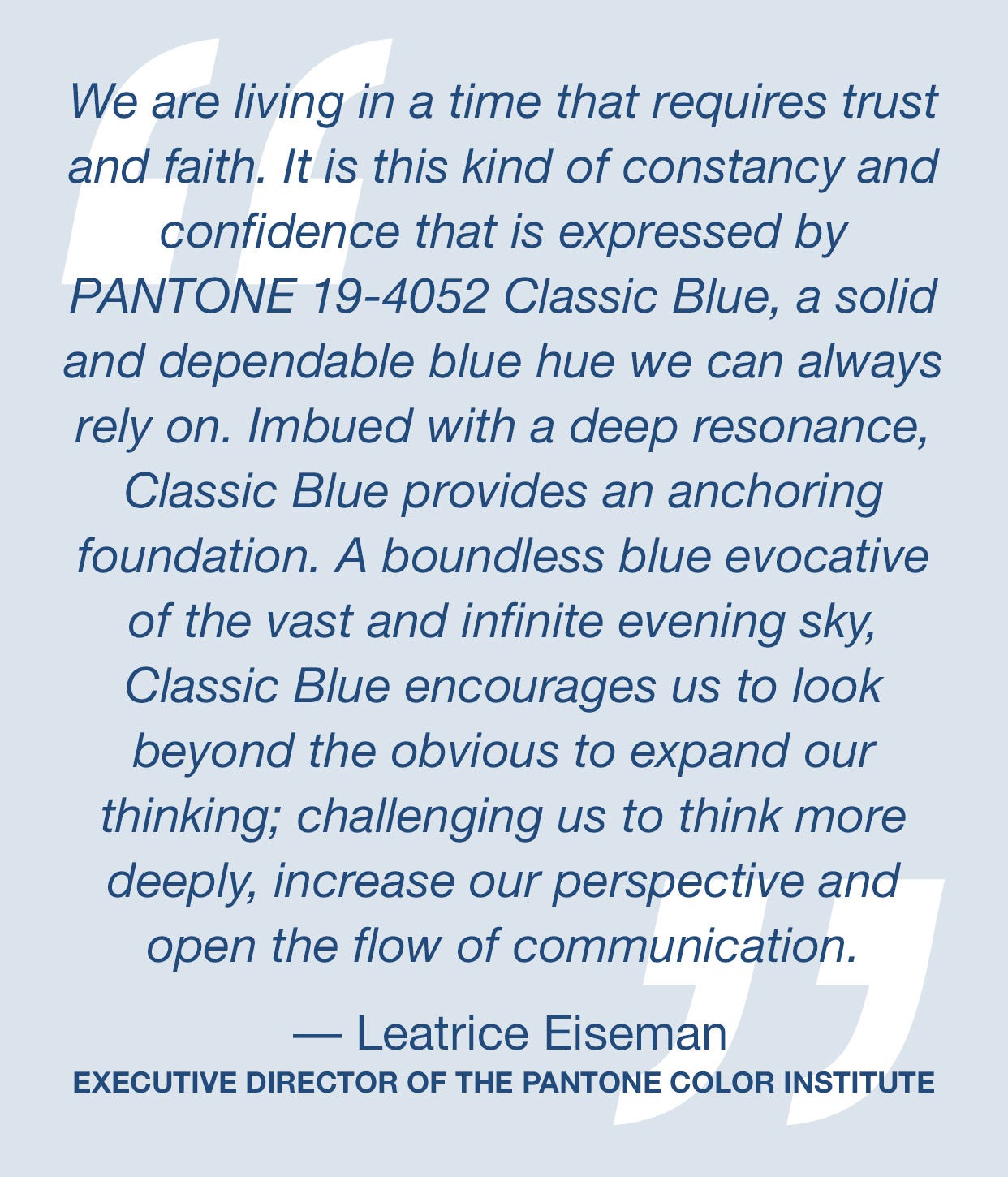 For example, Classic Blue was declared Pantone color of the year 2020. Here’s what the company had to say about the meaning behind this selection.