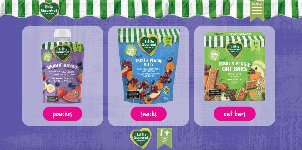 As one of the most trusted brands in the Canadian organic baby food market, Baby Gourmet uses a simple logo built on a heart-shaped emblem.