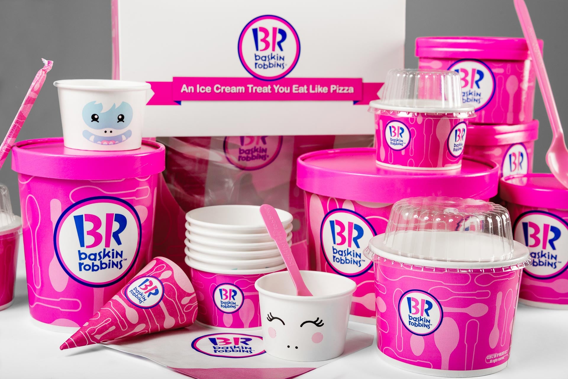 Pink is a color you can easily associate with ice cream, and desserts in general. Baskin Robbins capitalizes on this and captures a delectable pink shade in its ice cream cups, and packaging boxes as well.