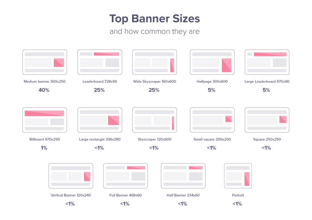 Banners come in many shapes and sizes depending on where you plan to advertise. Even within a single platform, different placements call for different sizes. Familiarize yourself with all the banner sizes you’ll need to prepare for your preferred placement.