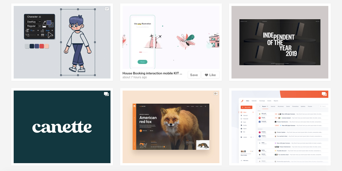 A good example of an effective UI design would be the card concept used by Dribble. They use cards to upload designs, allowing anybody who is scanning the site to browse easily. This card based design is just genius when it comes to featuring work, keeping it clean and simple so that site visitors stay engaged.