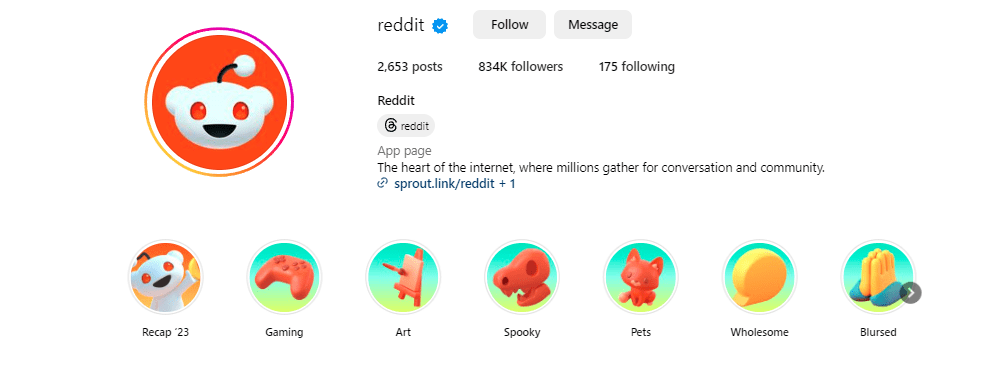 These 3D elements have been appearing in various places including the website and on Story Highlights on Reddit’s Instagram page.