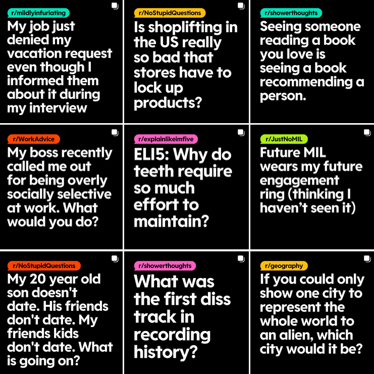 The first image below shows the Instagram grid of Reddit before rebranding and the next one shows the current grid with the new identity in place. Notice the kind of visual consistency that the brand has been able to bring into its social media aesthetics as a result of its clearly defined identity and brand elements.